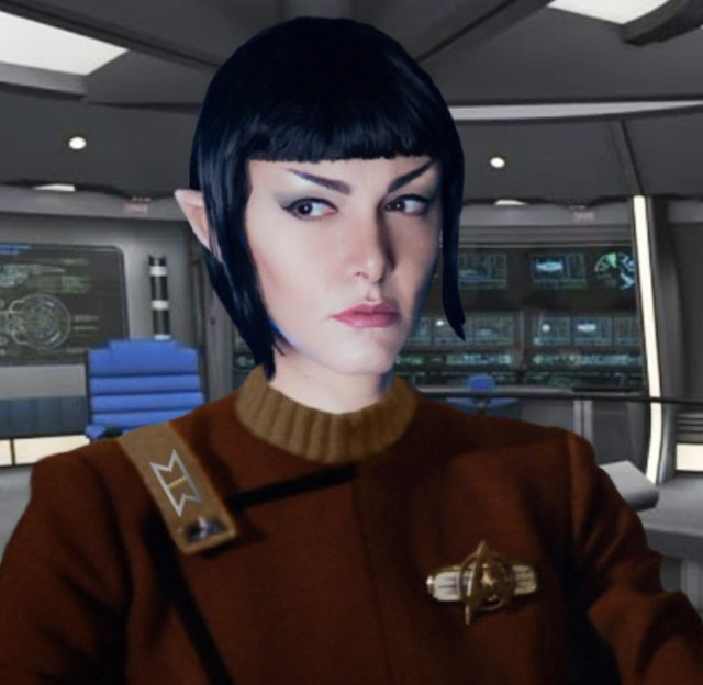 | Strengths & Weaknesses | She has excellent piloting skills, and is also extremely knowledgeable of science; an amalgamation of her time at the Vulcan science academy, and Starfleet academy. She has a Vulcan intellect, and approaches everything with a logical viewpoint. Her problem solving skills are exemplary. She can have a short fuse at times, though this is usually centred around any frustration she may be experiencing at that time. Though these frustrations are often short-lived, it does surprise people when they see an angry Vulcan cursing at science equipment. |
