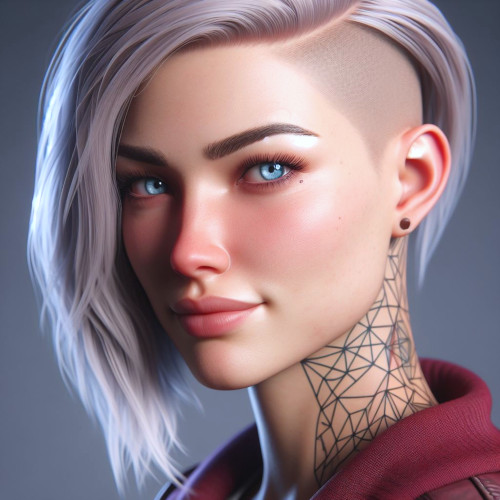 | Physical Description | Katja is slightly taller than average for a human female. Her build is slim, and she is physically fit - akin to a dancer's body. Her expression can be very serious when working on a problem or having a lot on her plate; but she is known for an easy smile and a boisterous laugh. Her hair is platinum blonde, and the sides of her head are kept shaved. Unless in surgery, her hair is brushed to the side and lays in pieced waves to her chin. Katja has a geometric line tattoo the side of her neck - so outwardly she doesn't seem like the most straight and narrow officer. |
